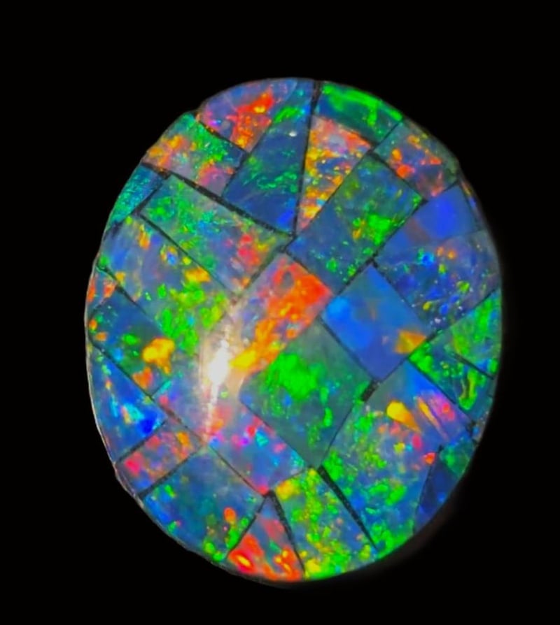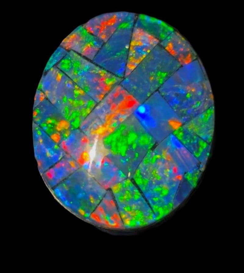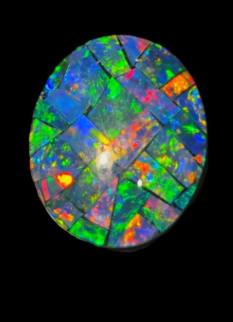 3.1 CARATS COOBER PEDY MOSAIC OPAL TRIPLET. Dimensions: 12x10x3mms Real And Genuine Colour And Ready To Work. Condition: Good - Refer Images 0+5