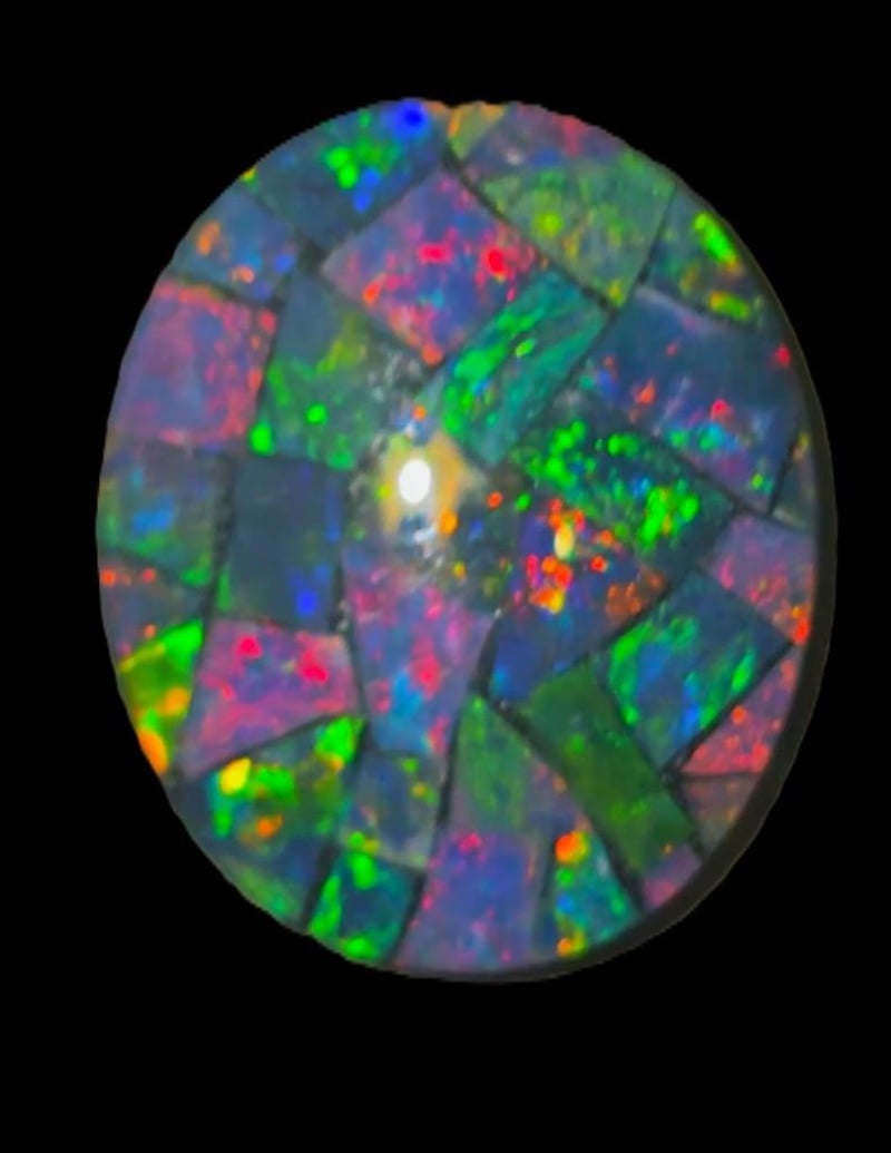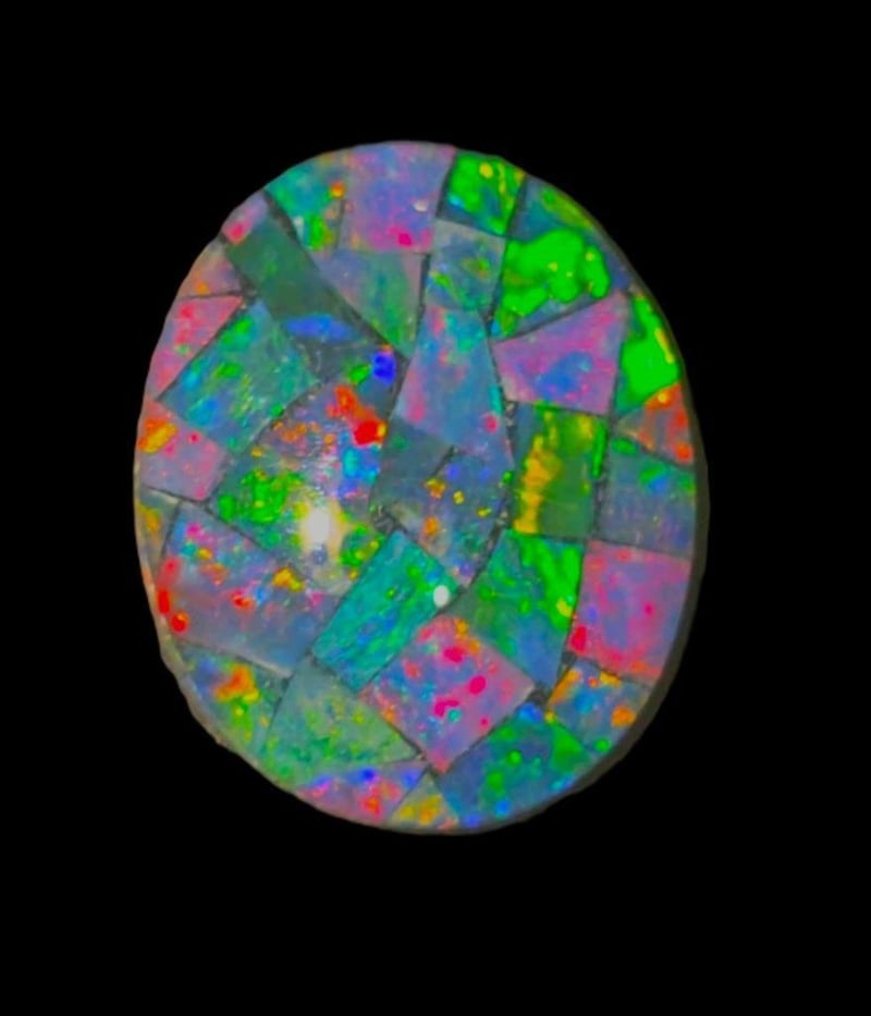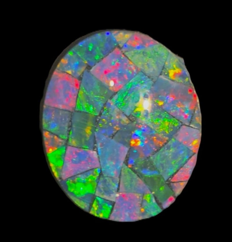 3 CARATS COOBER PEDY GENUINE MOSAIC OPAL TRIPLET. Dimensions: 12X10x3mms Real And Bright Colour. Condition: Good - Refer Images 0+55