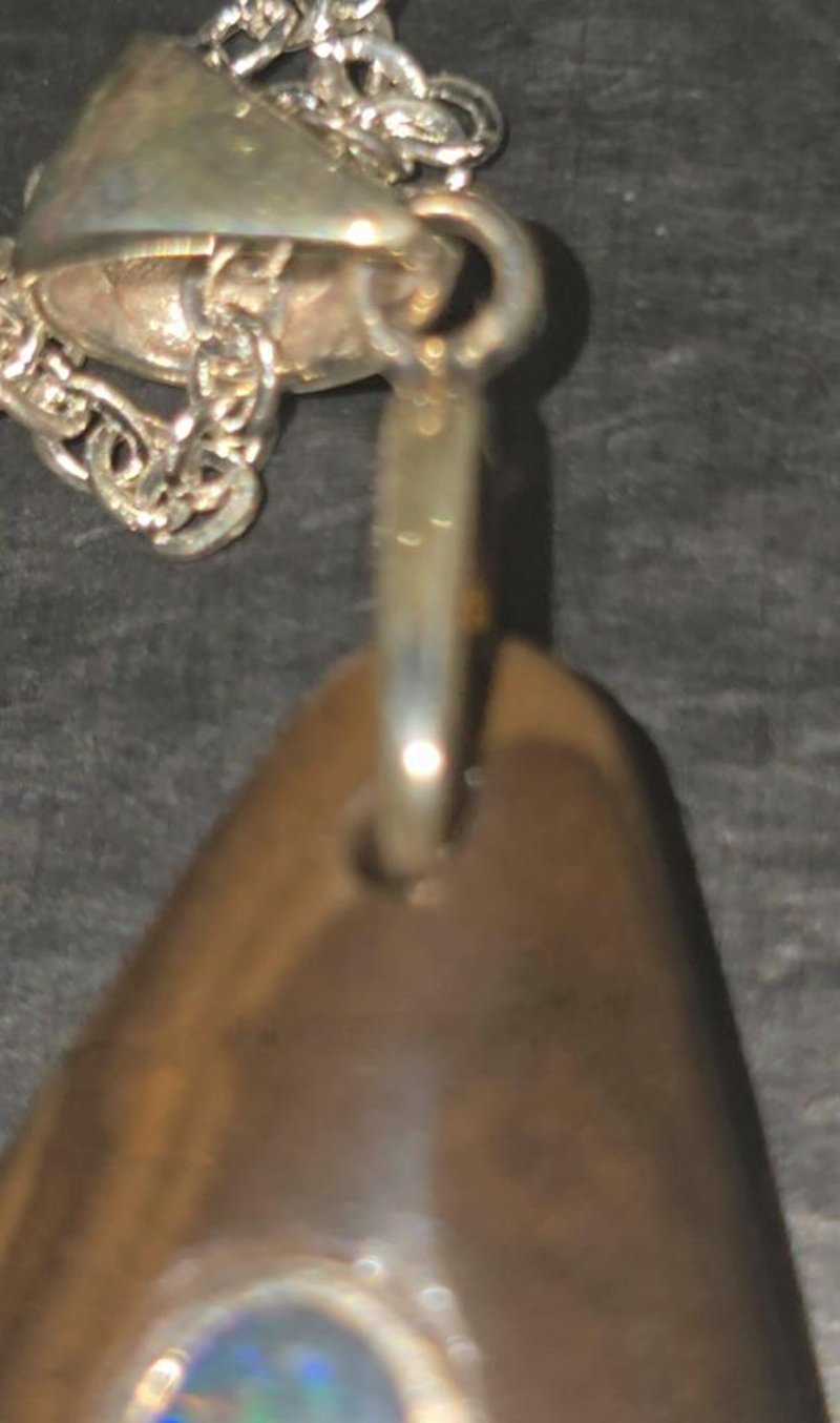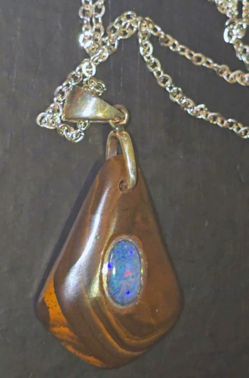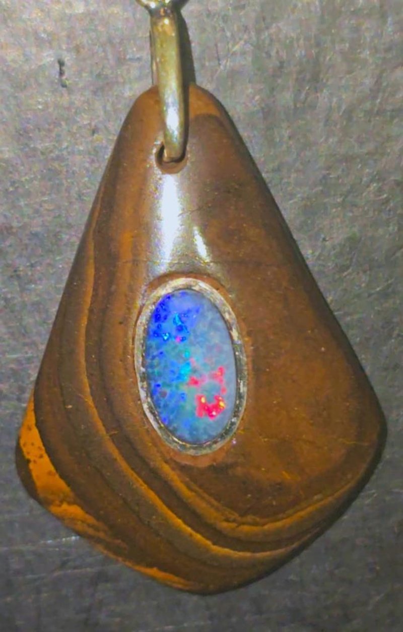 34.1 CARATS BOULDER OPAL WITH LIGHTNING RIDGE INLAID STONE. Very Well Finished With A Nice Centre Stone And Chain Condition: Good - Refer Images 0+66
