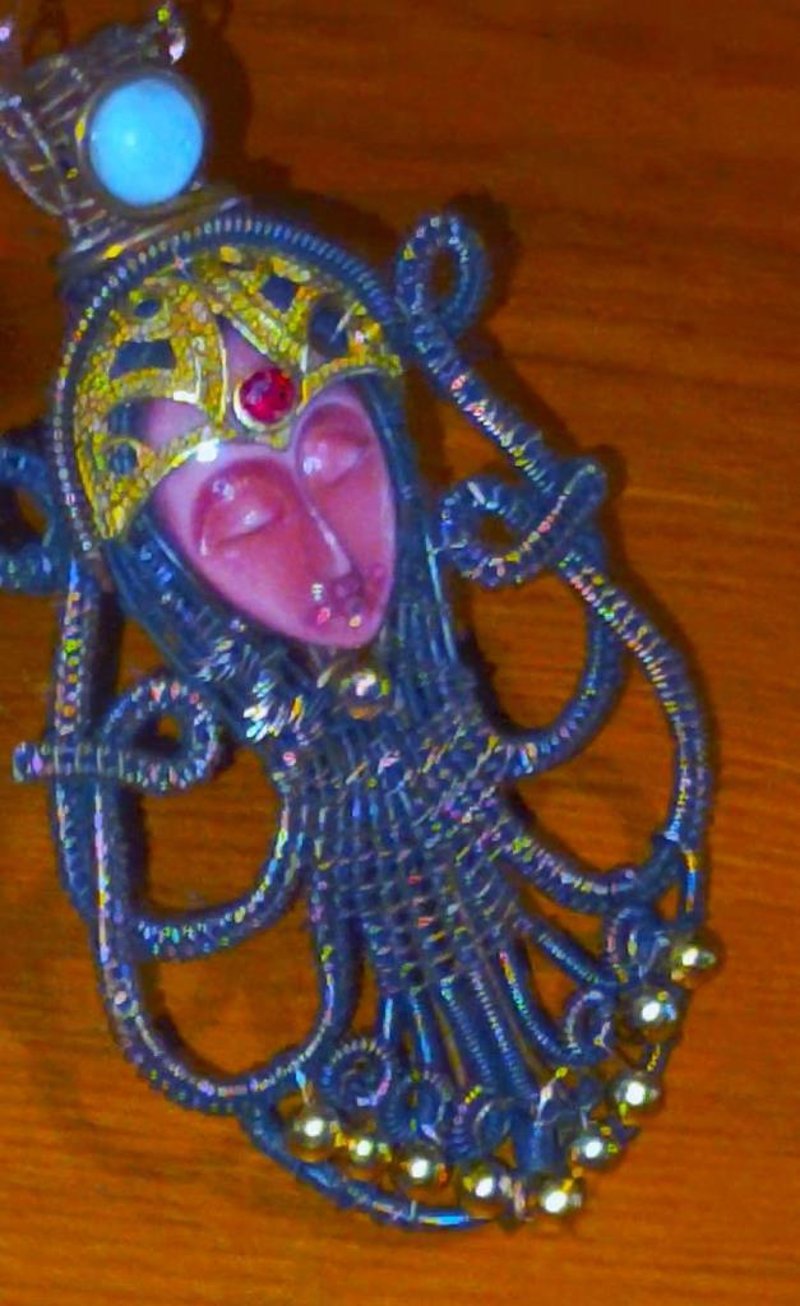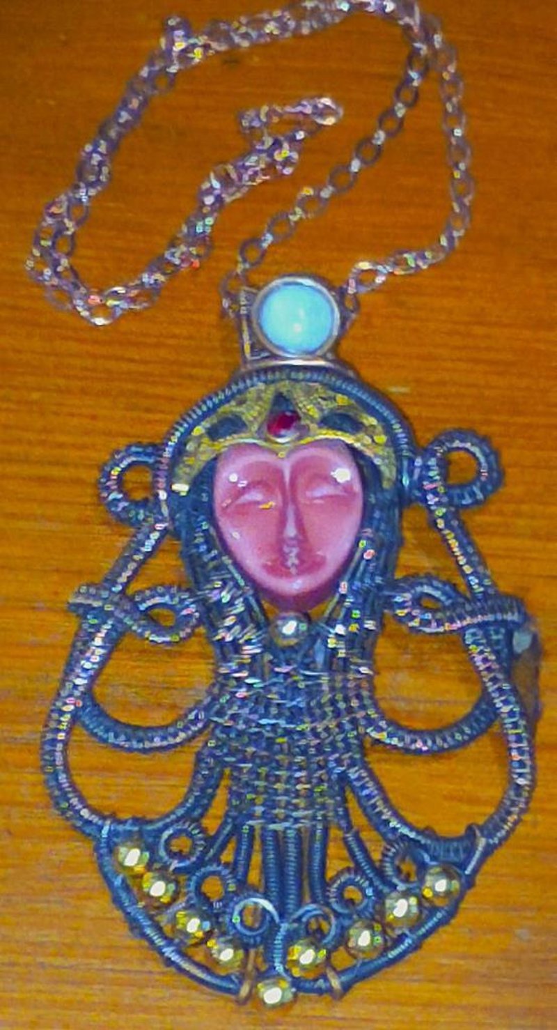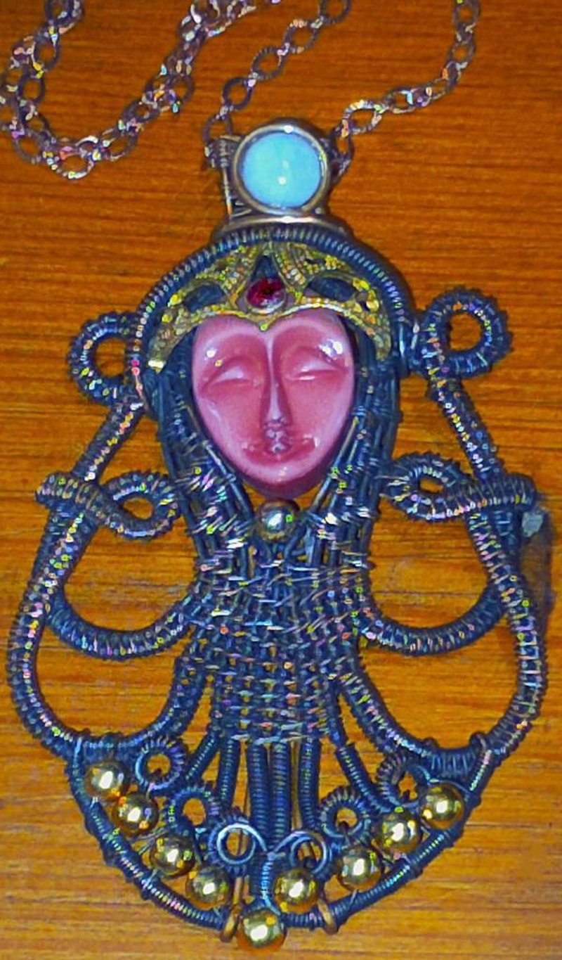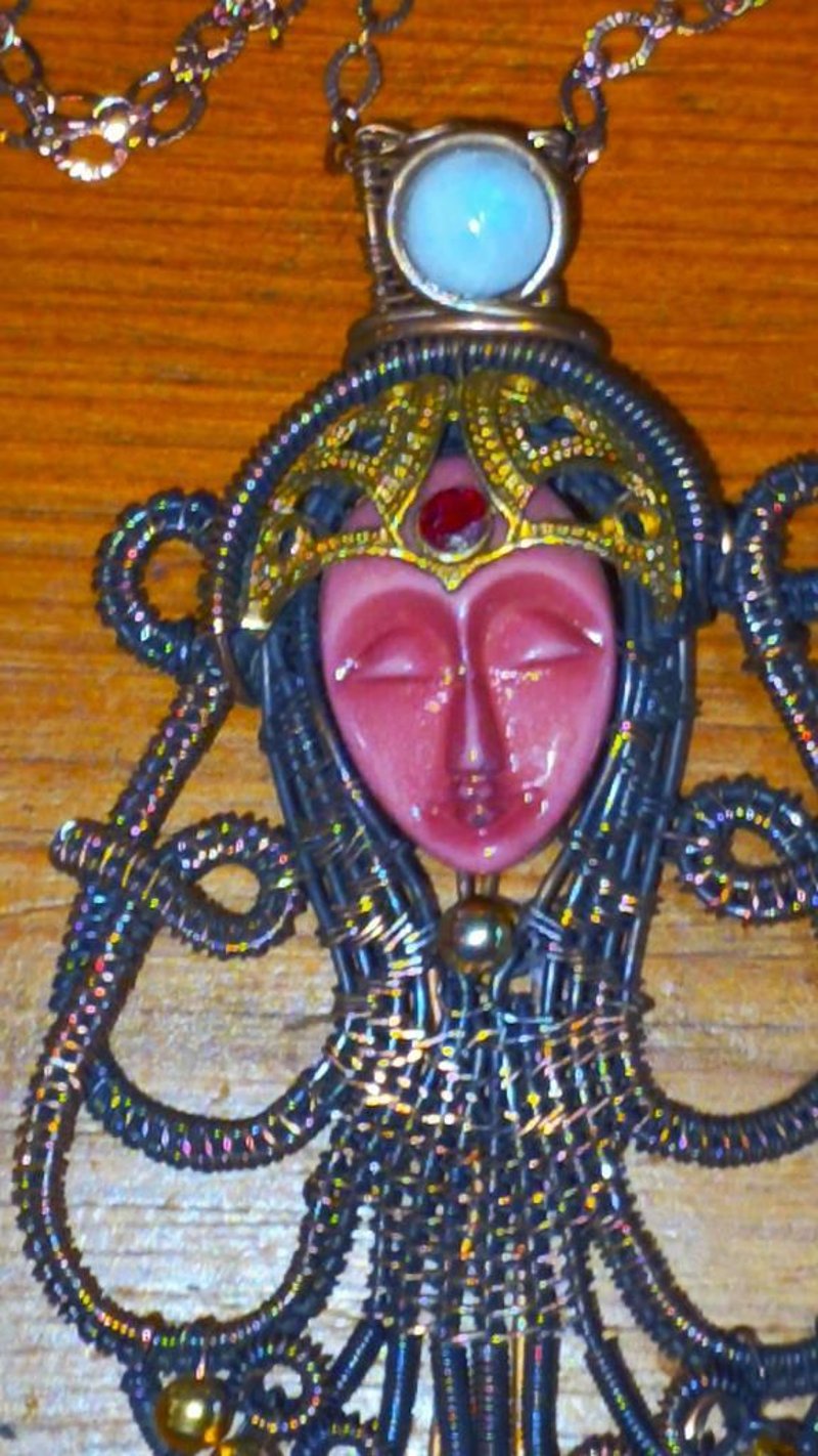 204 TCW JESTER BONE AND MOONSTONE AND RAW RUBY WRAPPED NECKLACE Modena Style. Condition: Good - Refer Images 0+103