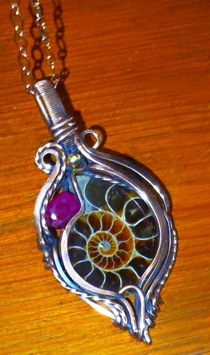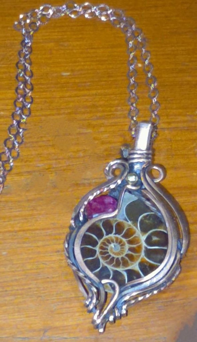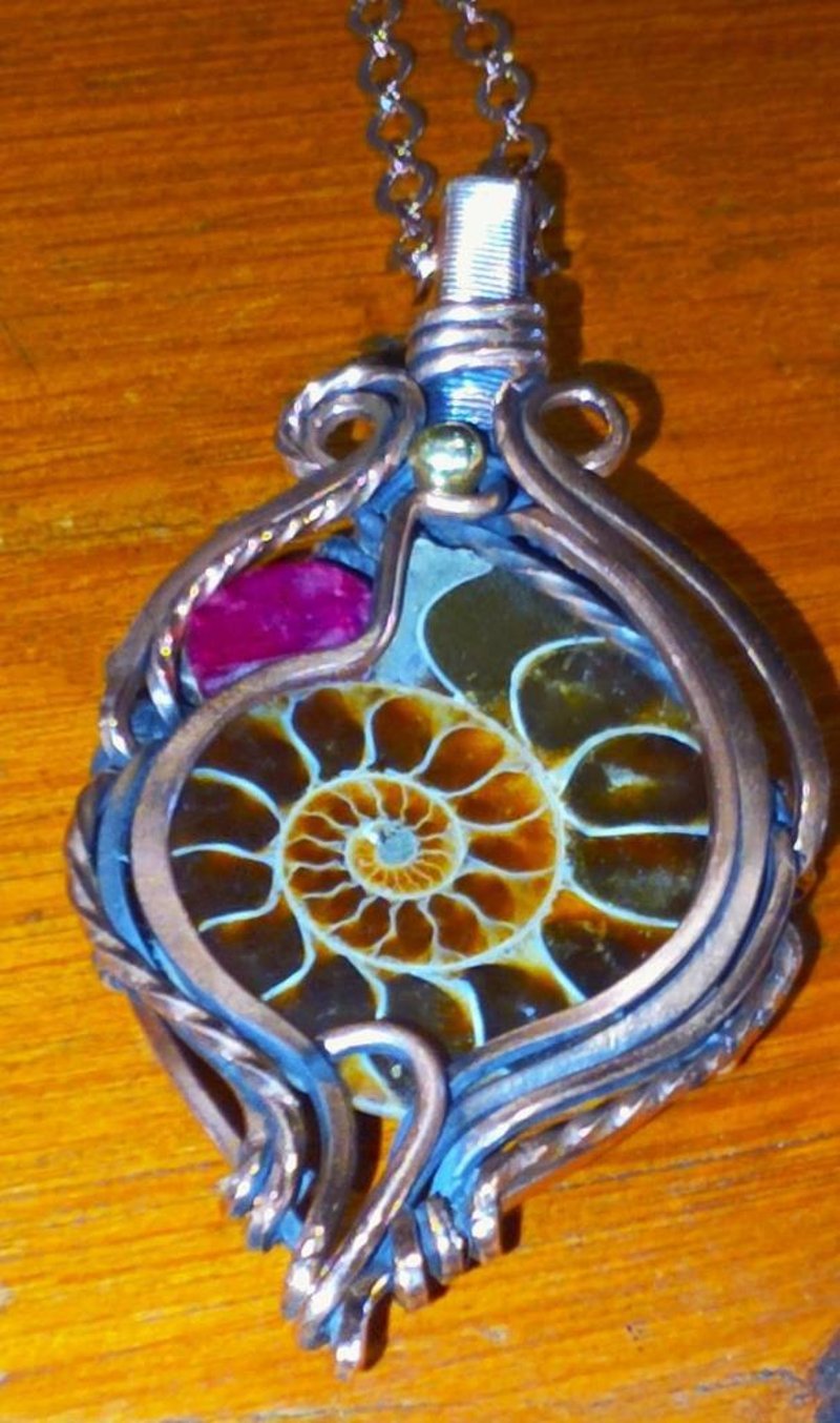 138 TCW POLISHED AMMONITE FOSSIL WIRE WRAPPED NECKLACE Condition: Good - Refer Images 0+104