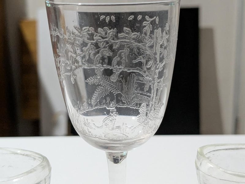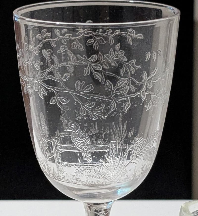 Glass Etched With Kookaburras & Kangaroo