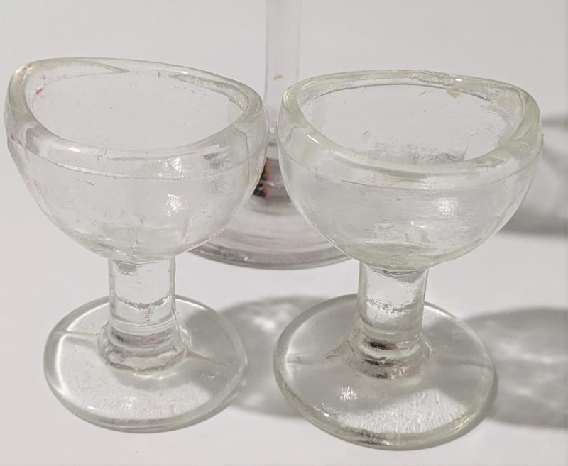 EARLY AUSTRALIANA ETCHED DRINKING GLASS & VINTAGE EYE WASH GLASSES