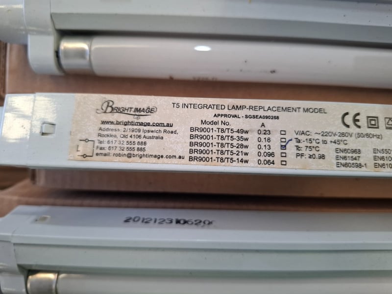 Assortment of T5 integrated lamp replacement, models vary , length varyQty to PhotoSol as LotNote: Inspection Recommended