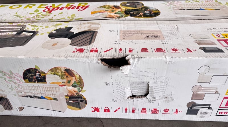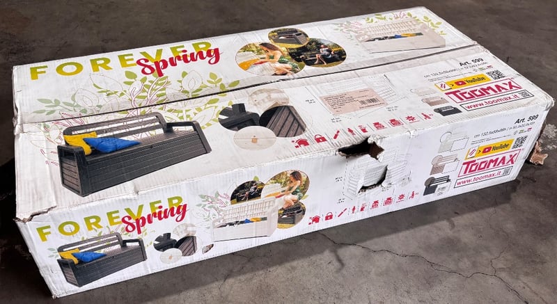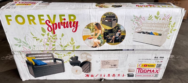 Park bench storage seat “Forever Spring”Note; box is damaged