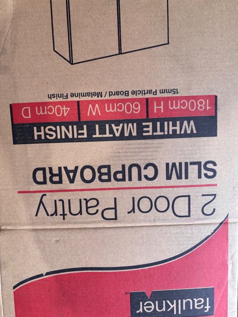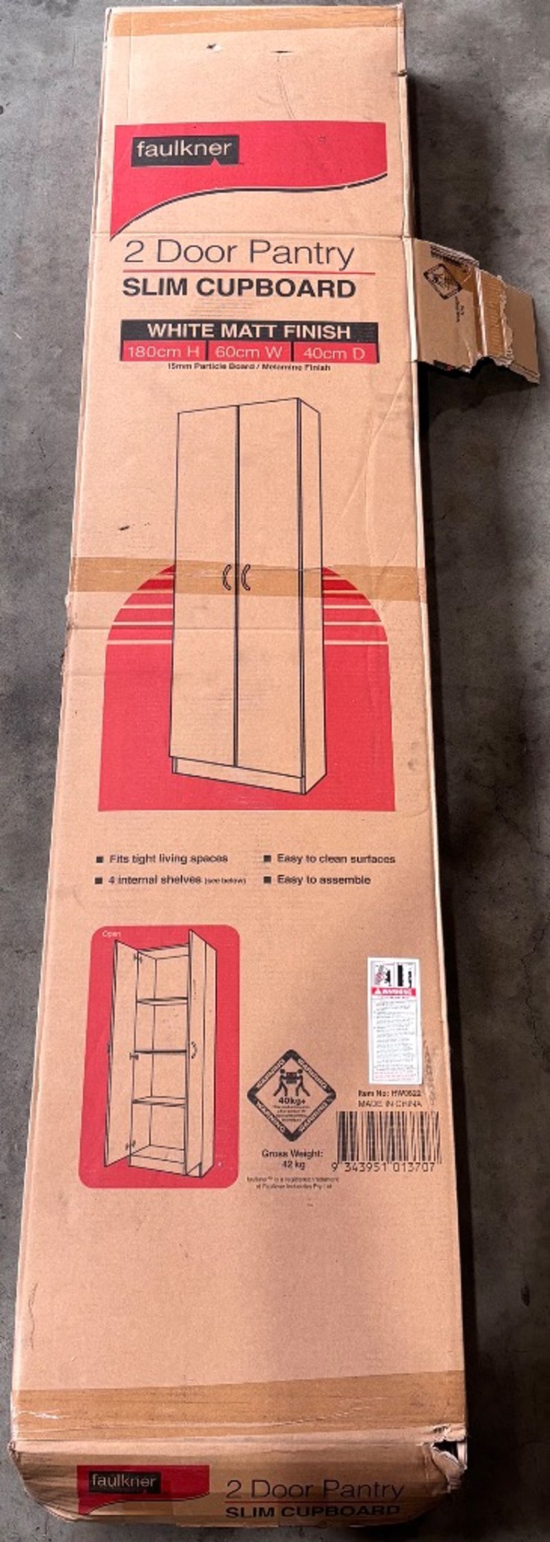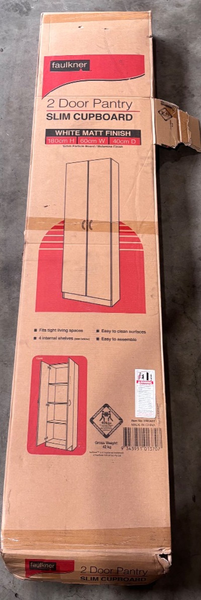 2 Door Pantry Slim Cupboard Colour; White Matt Finish1800mm x 600mm x 40mm Note; box is damaged