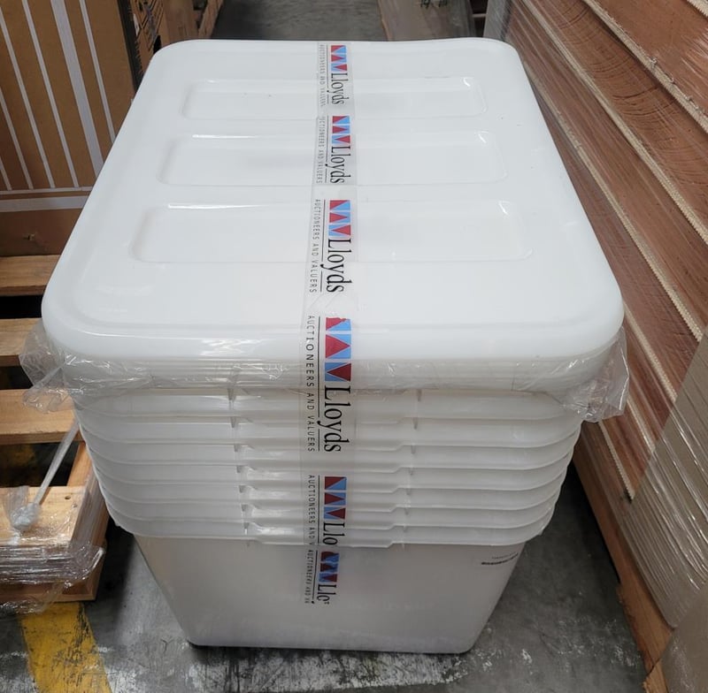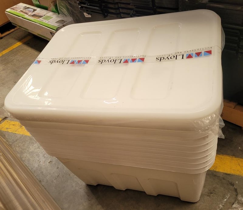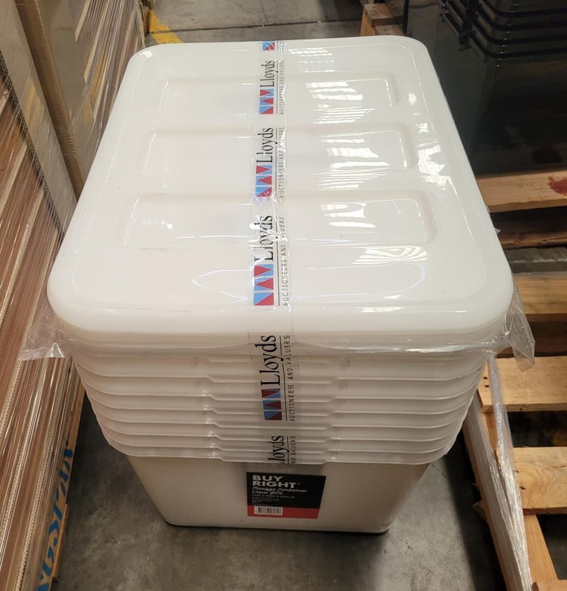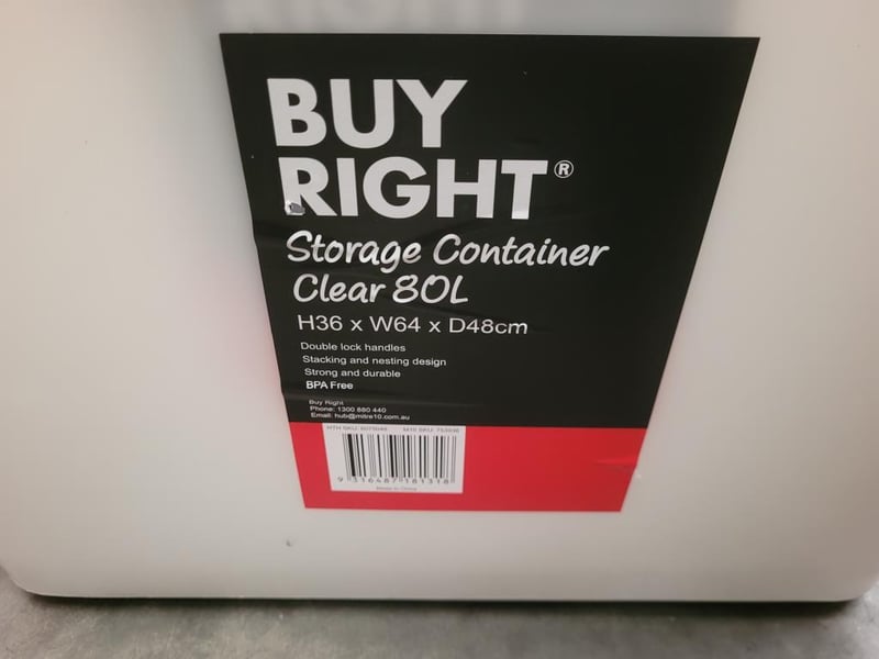 Buy right Storage Containers, Plastic with Lids, Clear, 80L Capacity BID PER EACH MUST TAKE 8