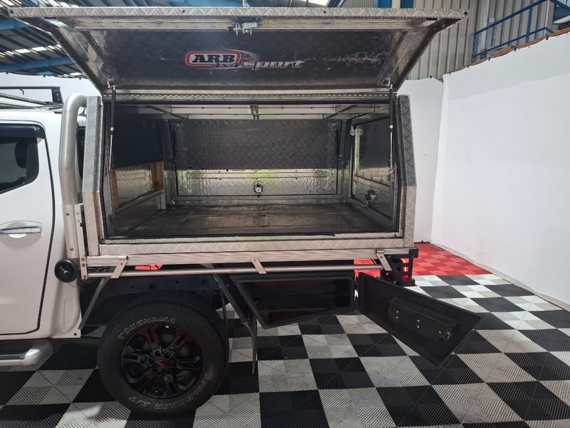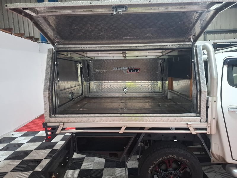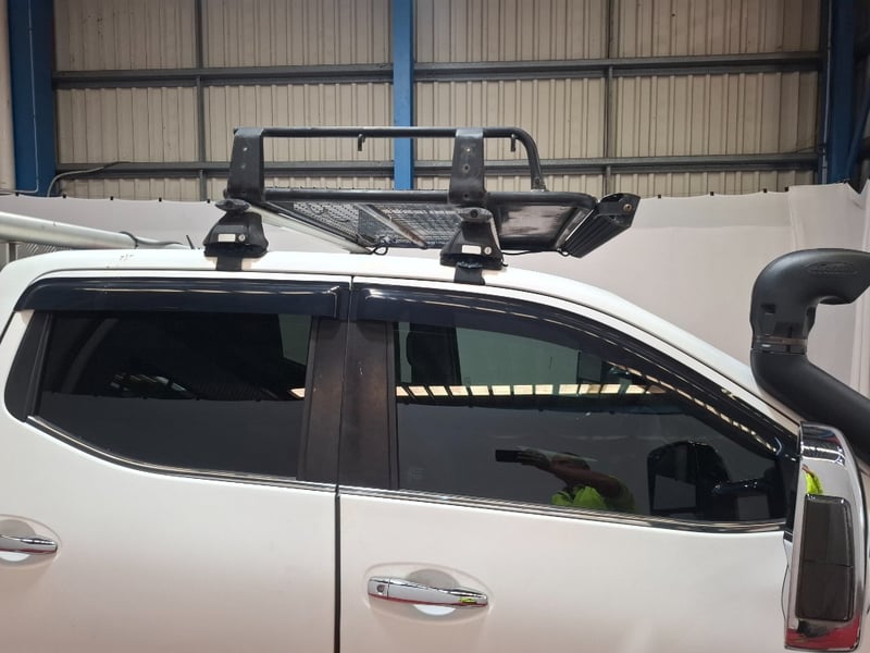 With dash mat, front and rear rubber floor , Electric rear 1/3 window, media and cruise control multi function steering wheel with cover, front facing dashcam intergrated on rearview mirror.l, LED light bars front and passenger side, back seat aircon vents, sunglasses holder, weather shields all round, snorkel and more. Hole in drivers flior mat, minor scratches on door plastics, minor paint chips on exteria , bonnet protector has faded and has scratches, some rust on the roof rack,.