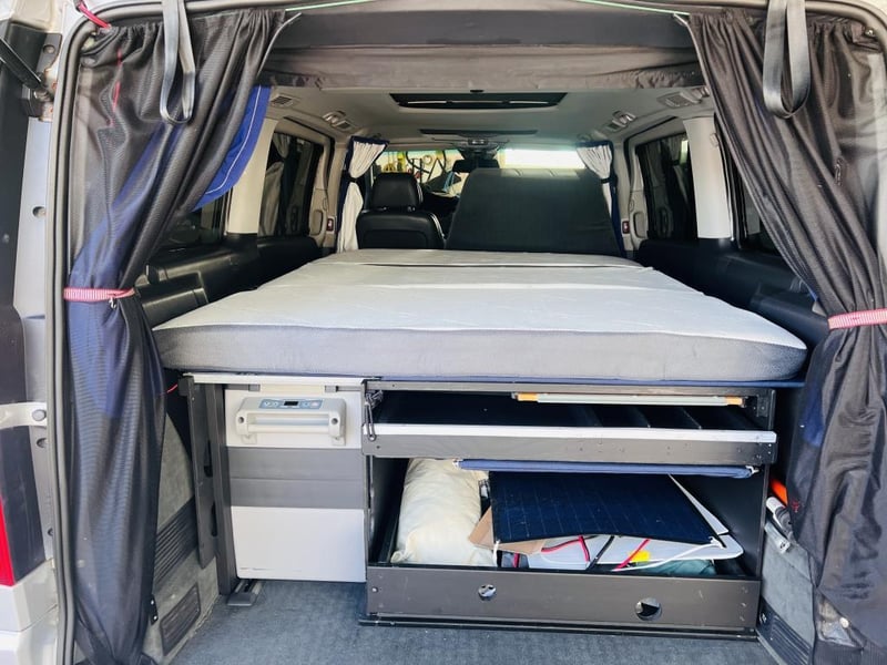 Vendor Reports; Fridge/Freezer - 2x Solar Panel - rooftop water storage - slide out trays - top bed and mattress - new battery - evc throttle controller - tail gate lock box - curtains - rear full insect screen.