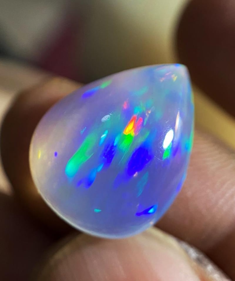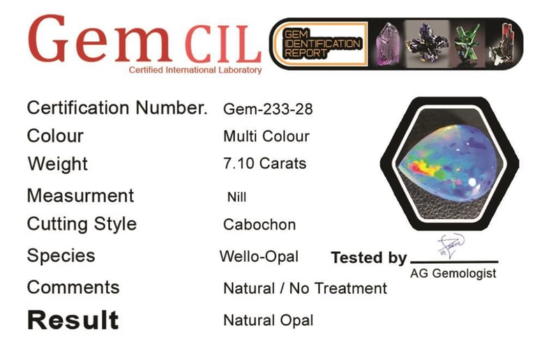 7.10 CARATS NATURAL FIERY WELLO OPAL 7.10 Carats Natural Fiery Wello OpalStone = Natural OpalWeight = 7.10 Carats Colour = Multi ColourCut = Cabochon Treatment = Natural, No TreatmentNote = Gem Cil, Certified Pic Taken Under Light Condition: Good - Refer Images 0488424+28