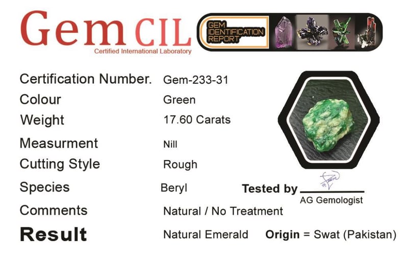 17.60 CARATS NATURAL ROUGH EMERALD 17.60 Carats Natural Rough EmeraldStone = Natural EmeraldWeight = 17.60 Carats Colour = Green Cut = RoughTreatment = No Oil (Natural)Origin = Swat (Pakistan) Note = Buyer May Feel A Bit Of Oil, Don’T Confuse It With Oiling Treatment, Natural Emerald And Ruby Require Some Oil To Keep The Surface Moist Before It Goes For Processing.{Straight Out Of Mine} Condition: Good - Refer Images 0488424+31