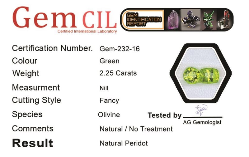 2.25 CARATS NATURAL LUSTROUS PERIDOT 2.25 Carats Natural Lustrous PeridotStone = Natural PeridotWeight = 2.25 CaratsColour = Green Cut = Fancy Note = Gem Cil, Certified, Precise Custom Cut (Not Commercial) Condition: Good - Refer Images 0488429+16