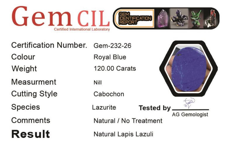 120.00 CARATS NATURAL ROYAL BLUE LAPIS LAZULI 120.00 Carats Natural Royal Blue Lapis Lazuli Stone = Natural Royal Blue Lapis LazuliWeight = 120.00 CaratsTreatment = Natural (Not Dyed) Cut = Cabochon Note = Gem Cil, Certified, Condition: Good - Refer Images 0488429+26