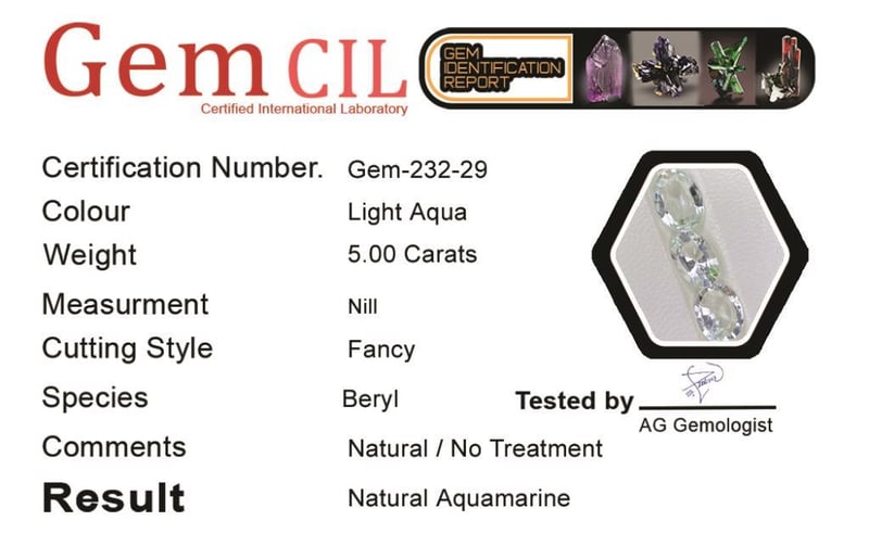 5.00 CARATS NATURAL AQUAMARINE 5.00 Carats Natural AquamarineStone = Natural AquamarineWeight = 5.00 Carats Cut = FancyColour = PaleQuantity = 1Note = Gem Cil, Certified, Condition: Good - Refer Images 0488429+29