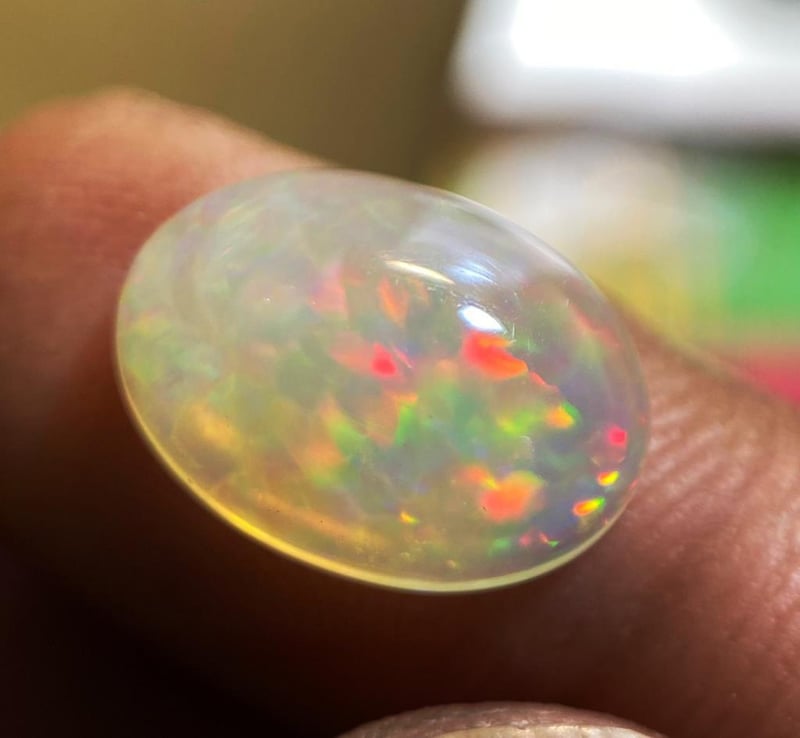 4.20 CARATS NATURAL ELECTRIC FIERY OPAL 4.20 Carats Natural Electric Fiery OpalStone = Natural OpalWeight = 4.20 Carats Cut = Fancy Colour = Play Of Various ColoursCut = Cabochon Treatment = Natural, No TreatmentNote = Picture Taken Under Light Condition: Good - Refer Images 0488429+39