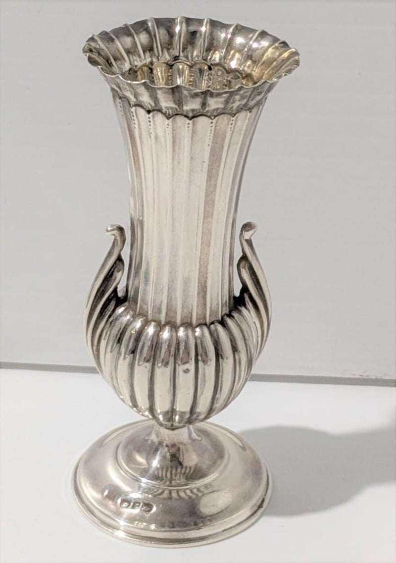 STERLING SILVER 9.5CM TALL VASEAssay Mark Of Anchor Birmingham EnglandCondition: Good - Refer To Images586311+8