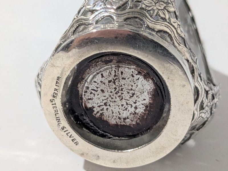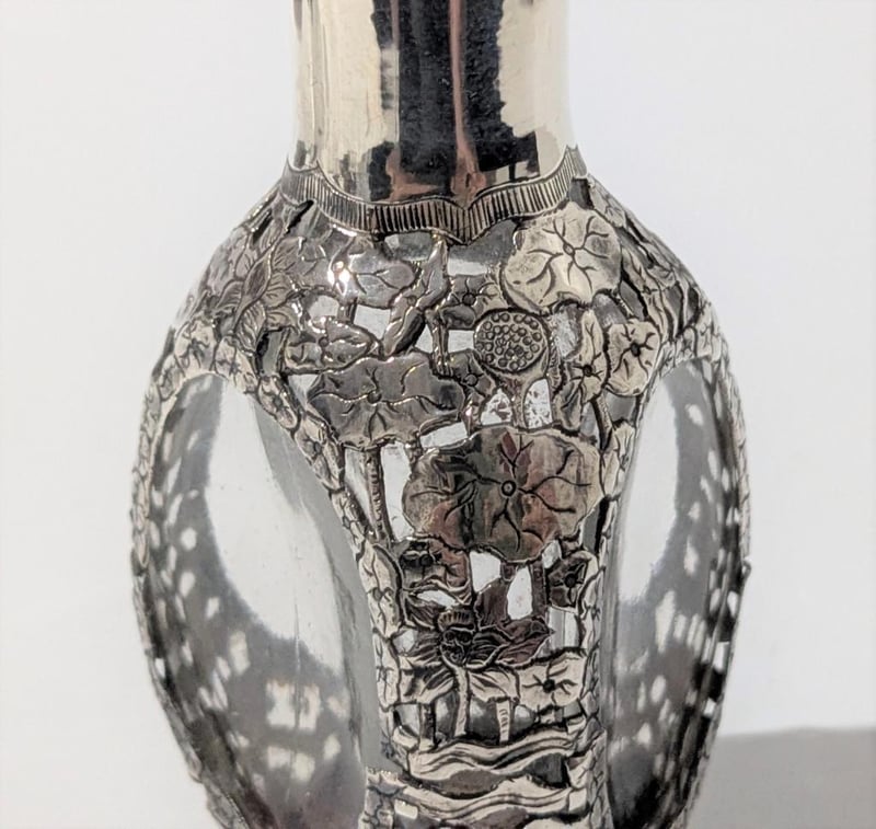 STERLING SILVER OVERLAY WAI KEE CHINESE DIMPLE BOTTLEMarked Sterling Silver & Wai Kee, 9Cm TallCondition: Good - Refer To Images586311+9