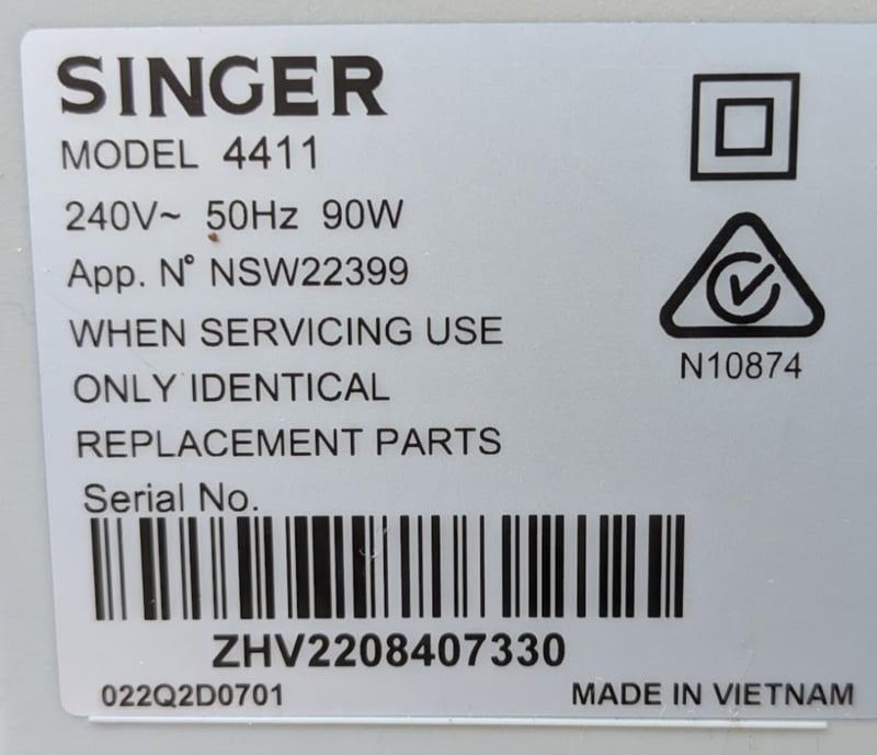 Singer sewing machine heavy duty model 4411 with foot pedal and cord - 90 watts
