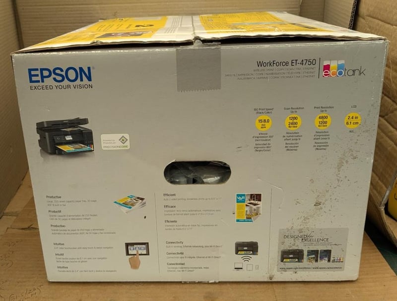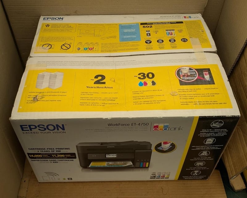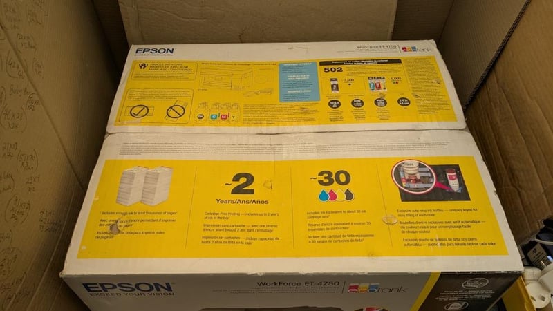 EPSON printer model Workforce ET-4750 with 2 years of Ink New to opened box