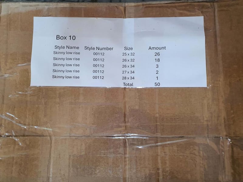 Box of 50 brand new womens Levis Jeans individually bagged. See image for sizes and styles.