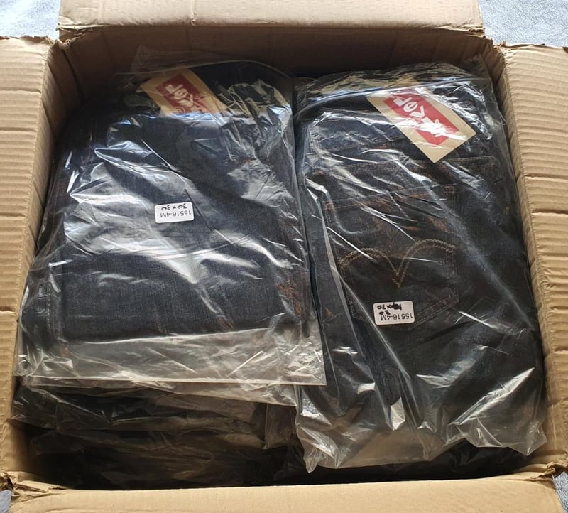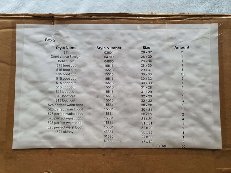 Box of 50 brand new womens Levis Jeans individually bagged. See image for sizes and styles.