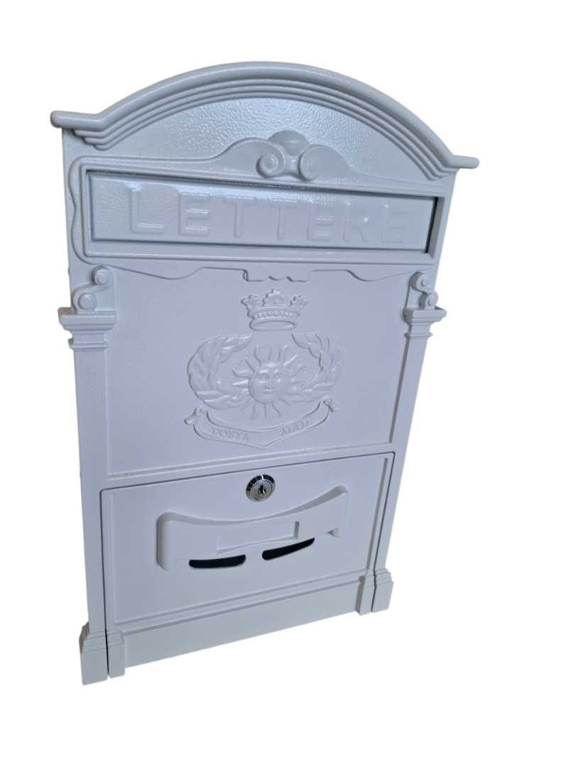 Vintage-style wall-mounted white metal lockable post box Dimensions 40 cm (H) x 26 cm (W) x 8 cm (D)