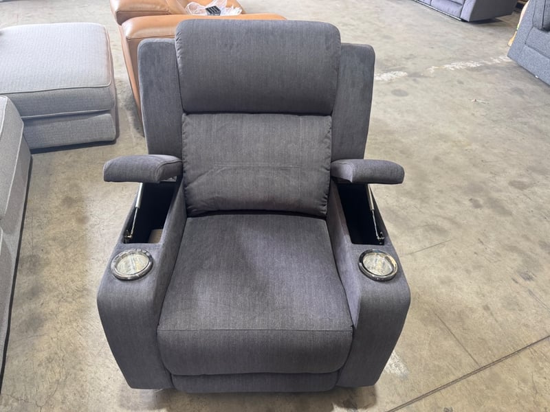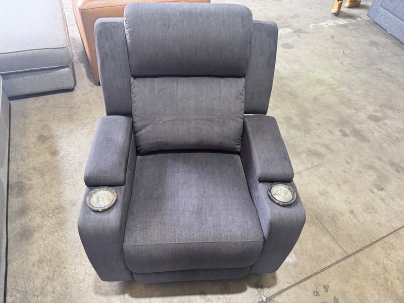 1 piece Lemon ebony coloured swayed fabric electrical reclining couch. Features dual cupholders, gas hydrologic armrests with storage compartments and buttons to control the recliner.Dimensions: 88cm(L), 80cm(W), 102cm(H).Inspection recommended