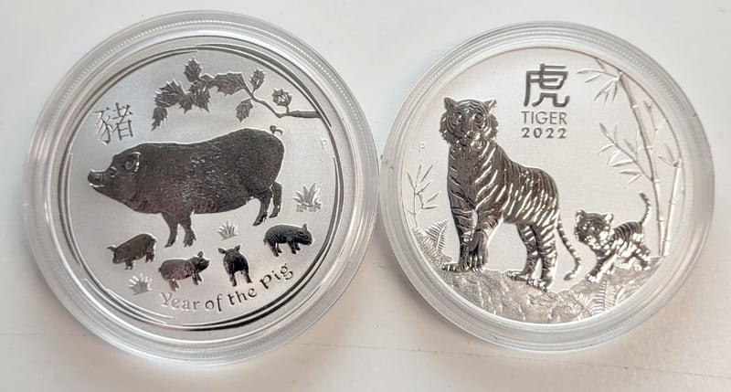 2X LUNAR SERIES 1OZ SILVER COINS , PROOF, "SCARCE"Provenance: Including - 2019 Year Of The Pig " Scarce" And 2022 Year Of The Tiger , Royal Australian Mint, 0.9999488435+31