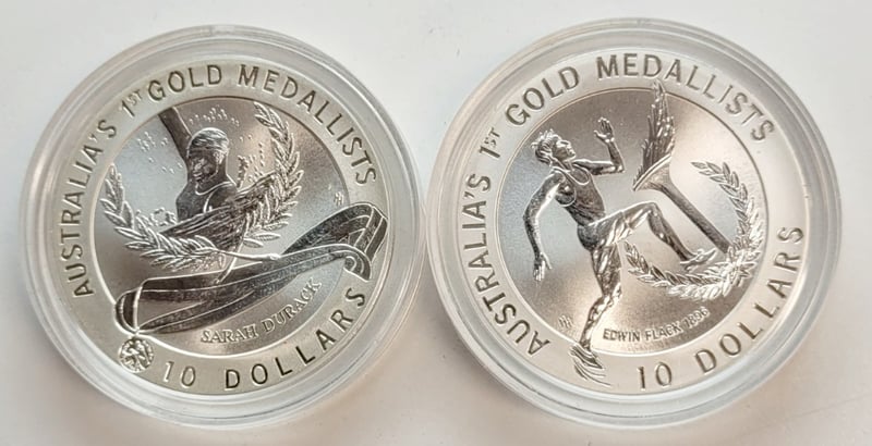 2X 1994 AUSTRALIAN $10 SILVER COINSProvenance: Royal Aust. Mint Heritage Collection , Edwin Flack And Sarah " Fanny " Duracell ( Sought After Collector Items ) , Proof488435+32