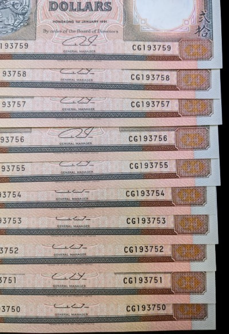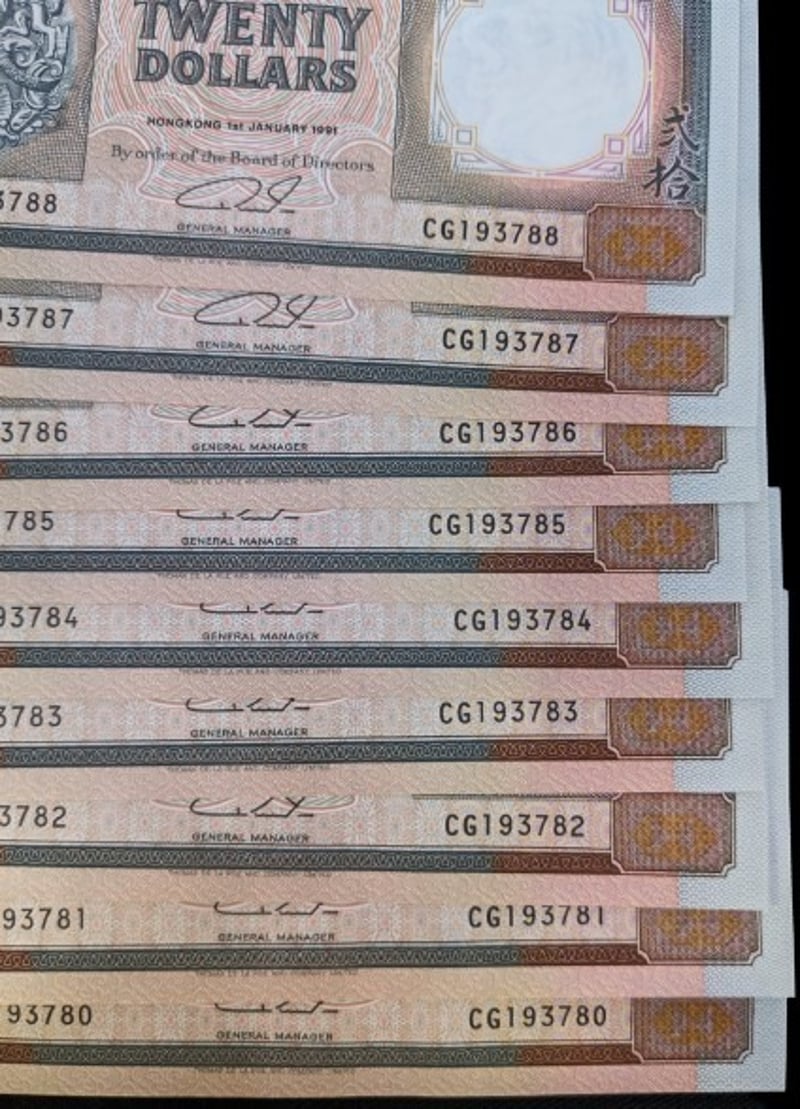 40X CONSECUTIVE SERIAL NUMBER THE HONG KONG AND SHANGHAI BANKING CORPORATION TWENTY DOLLAR BANK NOTESCondition: Unc488435+51