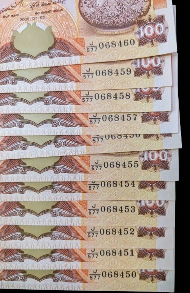 40X CONSECUTIVE SERIAL NUMBER BANK OF SRI LANKA 100 RUPEES BANKNOTES