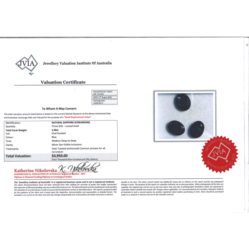 5.99CT TSW X 3, NATURAL BLUE CORUNDUM SAPPHIRES
