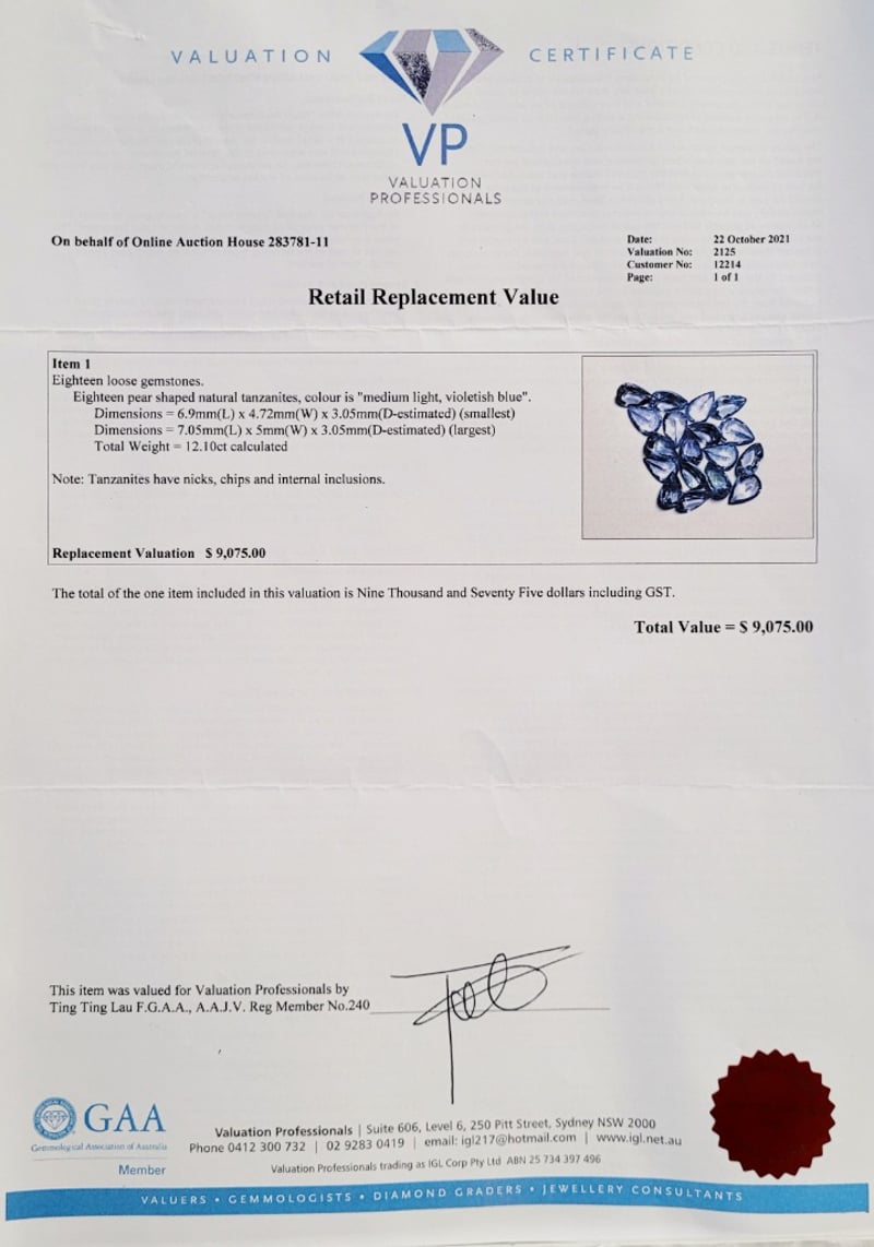 12.10CTS TCW PEAR SHAPED TANZANITE GEMSTONES
