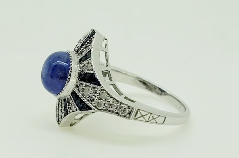 9CT WHITE GOLD RING0.39Ct Natural Diamond 2.57Ct Natural Tanzanite0.96Ct Natural SapphireTotal Item Weight: 4.62gCondition: Good - Refer To Images488436+20