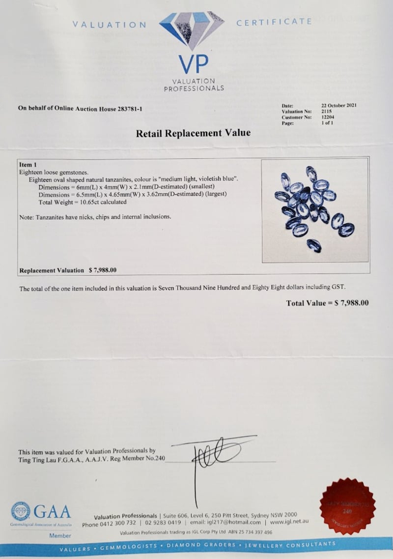 This valuation has been conducted by an independent third-party professional. The valuation amount is an assessment by the issuing valuer and does not reflect the auction value of the item.