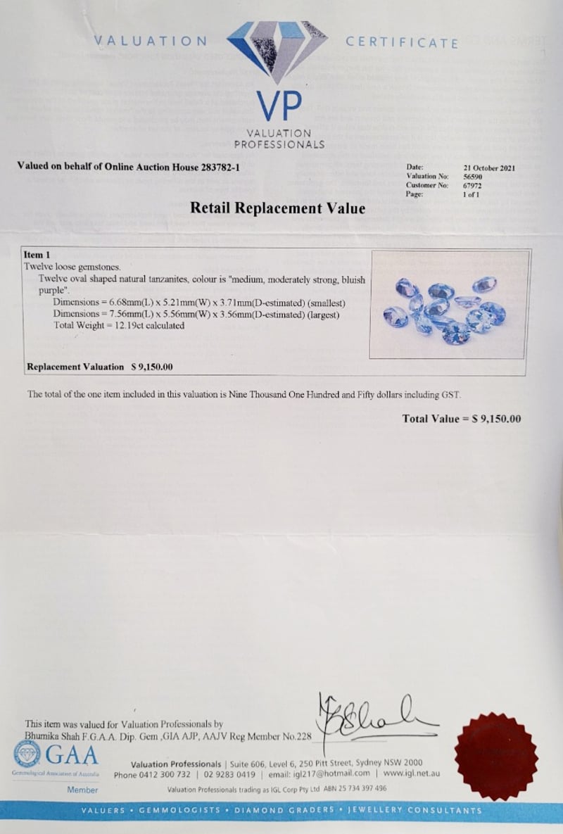 12.19CTS TCW OVAL SHAPED TANZANITE GEMSTONES