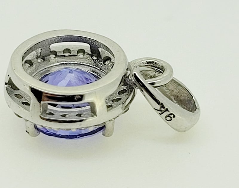 9CT WHITE GOLD TANZANITE AND DIAMOND PENDANTCondition: Good - Refer To ImagesProvenance: 1 Tanzanite = 1.23Ct / 22 Round Diamond = 0.15Ct One Ladies - Oval Shaped 9Ct White Gold Pendant , Polished Finish , Stamped (9Ct) With Saddle488436+25