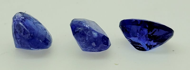3X NATURAL BLUE TANZANITE GEMSTONES TRANSPARENT TREATMENT – NO TREATMENT DETECTED Pear - 3.15Ct Round - 3.1Ct Oval - 3.15Ct Condition: Good - Refer To Images 488436+40