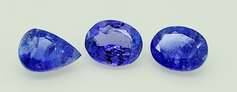 3X NATURAL BLUE TANZANITE GEMSTONES TRANSPARENT TREATMENT – NO TREATMENT DETECTED Pear- 3.05Ct Oval - 3.0Ct Oval - 3.0Ct Condition: Good - Refer To Images 488436+39
