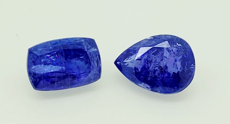 2X NATURAL BLUE TANZANITE GEMSTONES TRANSPARENT TREATMENT – NO TREATMENT DETECTED Pear - 4.3Ct Cushion - 4.25Ct 488436+56