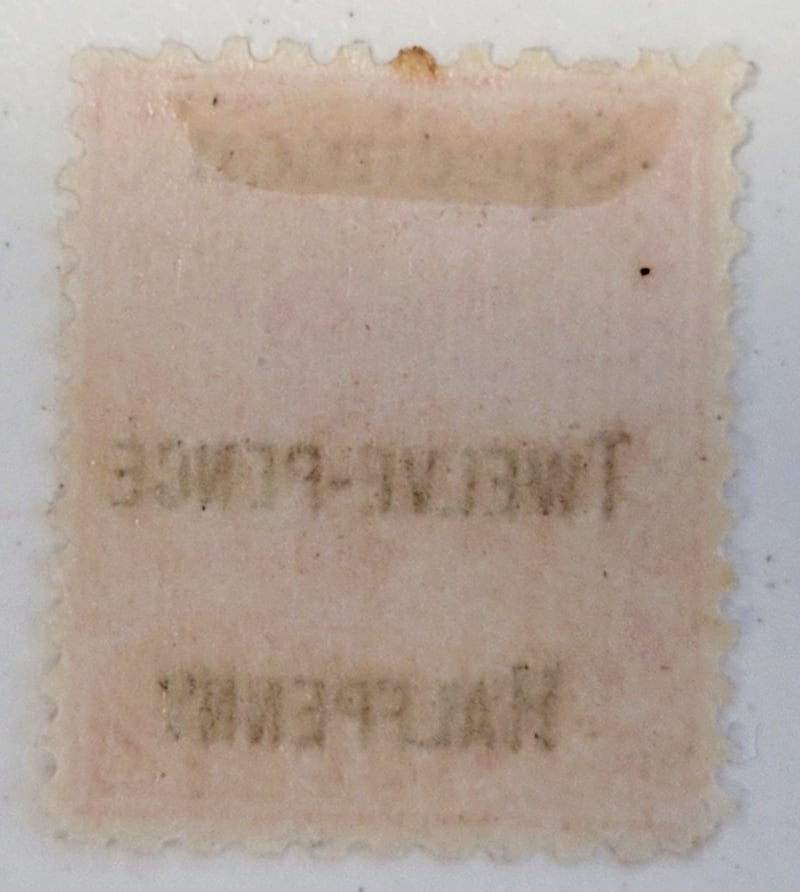 1891 12 1/2 D ON 1 SHILLING RED , " SPECIMEN" AND " TWELVE - PENCE HALFPENNY " ON 1/- SHILLI G QV MINT , PREVIOUSLY VERY LIGHTLY HINGED , FINE AND FRESH , 4 MARGINS488458+69