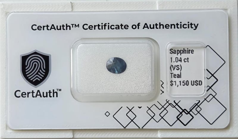 1.04 CT OVAL CUT TEAL SAPPHIRE – HEAT TREATED A Natural 1.04-Carat Teal Sapphire Displaying An Attractive Blend Of Blue-Green Tones. This Oval-Cut Sapphire Features Vs Clarity With Fine Internal Characteristics Consistent With Earth-Mined Material. Heat Treated To Enhance Colour And Stability, And Authenticated With A Certauth™ Digital Certificate.Details:• Gemstone: Sapphire – Corundum• Carat Weight: 1.04 Ct• Colour: Teal• Cut: Oval Cut• Clarity: Vs• Treatment: Heat Treatment• Dimensions: 6.9 × 5.6 × 3.3 Mm• Origin: Not Determined (Earth-Mined)• Certification: Certauth Digital Certificate (No: Ca186301)• Estimated Value: $1,150 UsdNote: Supplied Sealed In Original Certauth™ Securecard With Digital Verification. Condition: Good - Refer Images 0488440+35