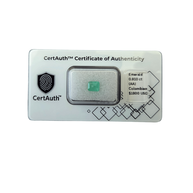 0.91 CT EMERALD CUT COLOMBIAN EMERALD – NATURAL, MINOR OIL A Fine 0.91-Carat Colombian Emerald Displaying A Vivid Green Colour With Excellent Transparency. Cut In A Classic Emerald Cut, This Gemstone Shows A Balanced Tone And Strong Brilliance, With Minimal Enhancement. Earth-Mined And Lightly Oiled, Authenticated With A Certauth™ Digital Certificate.Details:• Gemstone: Emerald – Beryl• Carat Weight: 0.910 Ct• Colour: Vivid Green• Cut: Emerald Cut• Dimensions: Not Stated• Clarity: Transparent, Grade Aa• Treatment: Oiled (Minor)• Origin: Colombia• Certification: Certauth™ Digital Certificate (No: Ca186426)• Estimated Value: $1,800 UsdNote: Supplied Sealed In Original Certauth™ Securecard With Digital Verification. Condition: Good - Refer Images 0488440+41