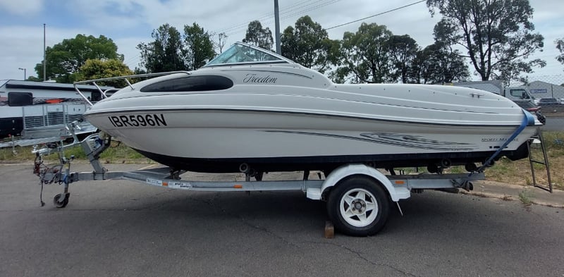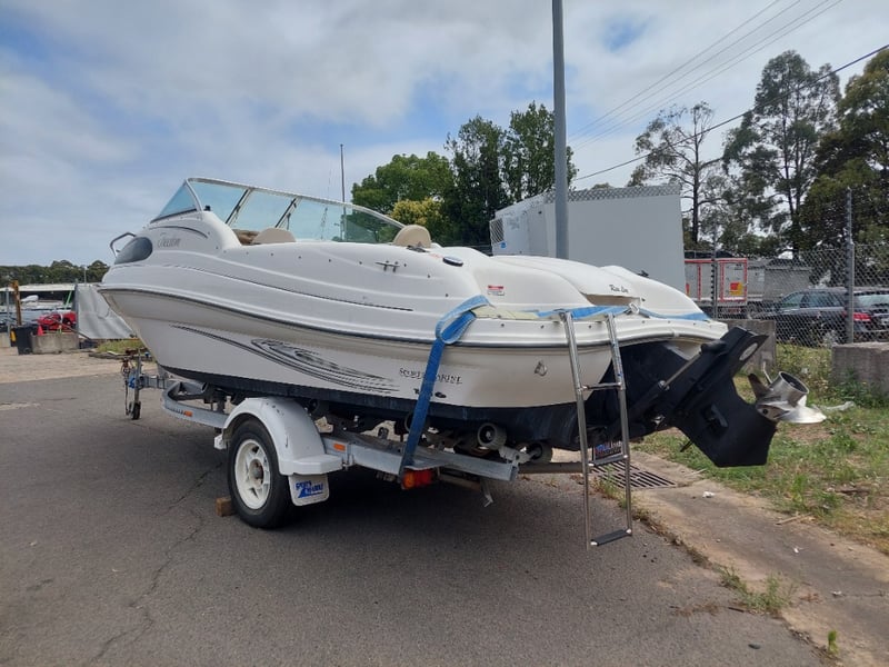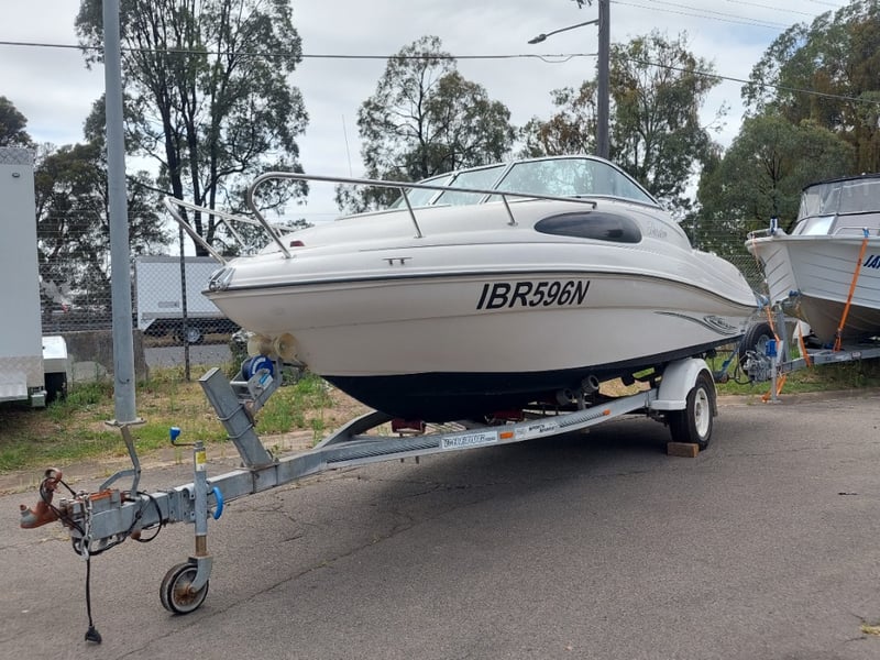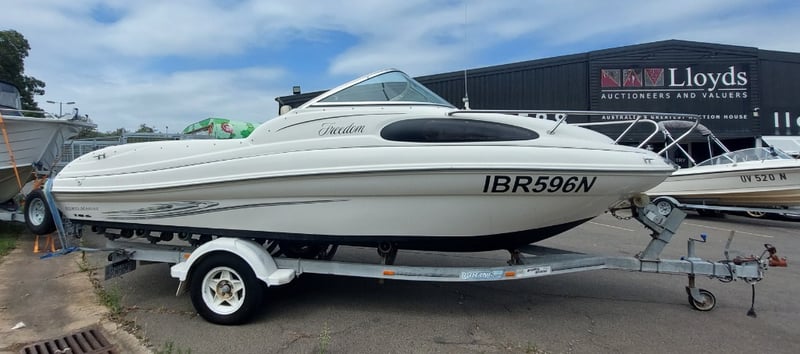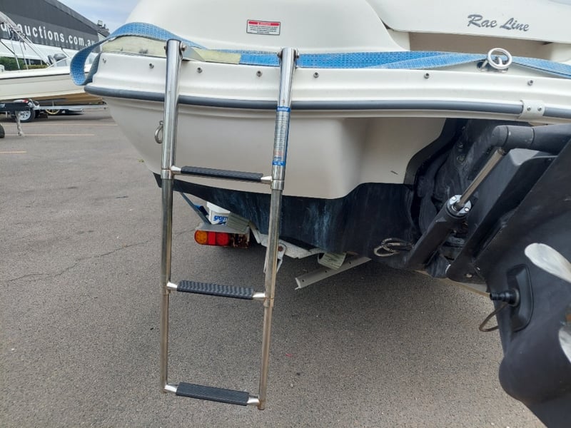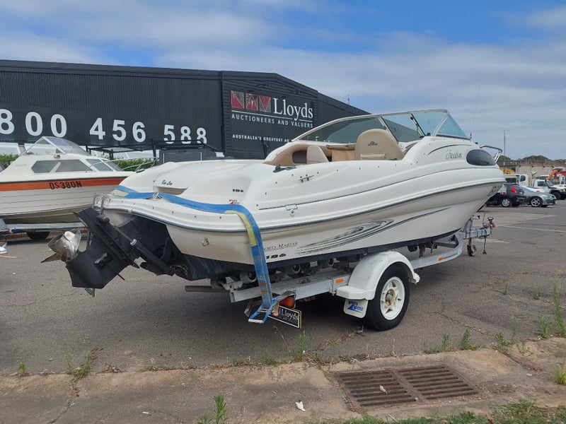 2005 Raeline186 Cuddy Cab Year: 2005 Make: Raeline Model: 186 Body: Cuddy Cab Hull Material: fibreglass Capacity: 4 persons Colour: blue & white Engine: 3.0 Litre Mercury mercruiser Engine Model: Mercruiser Engine no: SAEJ1171MARINE Engine Hours Indicating: 452.8 Total length on trailer: 5000mm L, 1700mm H, 1500mm W APPROX DIMS> Trailer width: 1400mm HIN: NZRAEL0661A505 Vessel length: 5.7 Meters ON A TRAILER: Year: 2005 Make: Boeing Trailers Model: J158ED Body: Boat trailer Colour: Silver Configuration: Single axle VIN: 6FW1158ED51UG2352 ATM: 1760KG Tare: UNKNOWN Total length: 5400mm Key # TBC