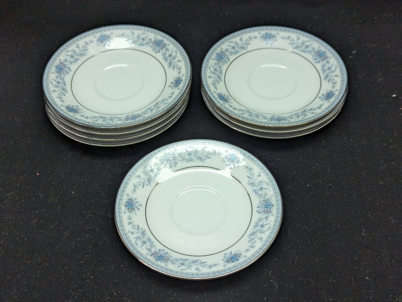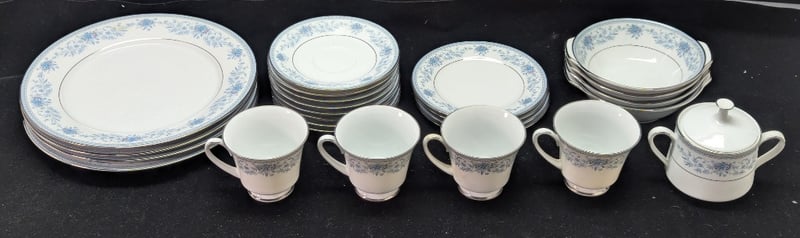 NORITAKE TWENTY-FIVE PIECE BONE CHINA DINNERWARE SETItems Include Eight Saucers, Four Side Plates, Four Dinner Plates, Four Desert Bowls, Four Cups And One Sugar Bowl And LidCondition: Good - Refer To Images7C587806+3