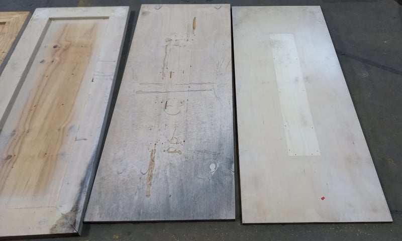 4 timber style panels measuring approximately, 80cm W, 5cm D, 200cm L