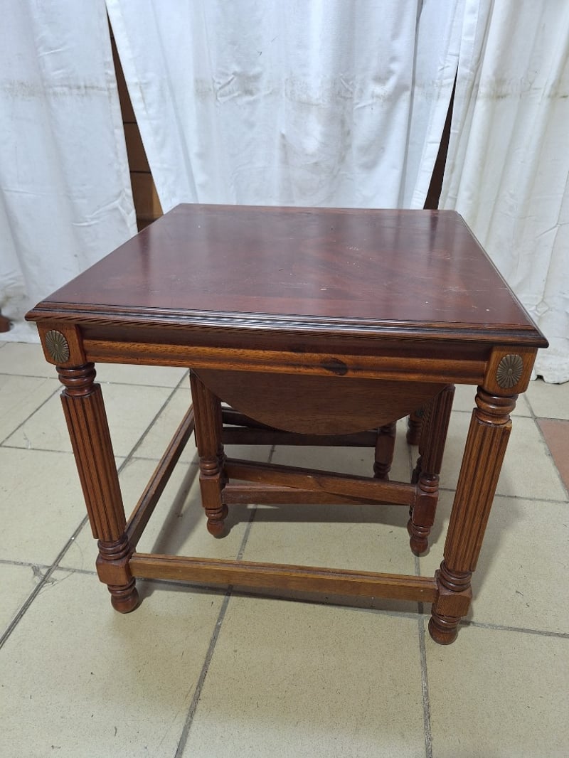 Set Of Nesting Tables, Timber Style, Brown Finish