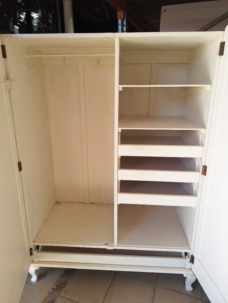 Wardrobe With Storage, Timber Style, White Finish, Key Included