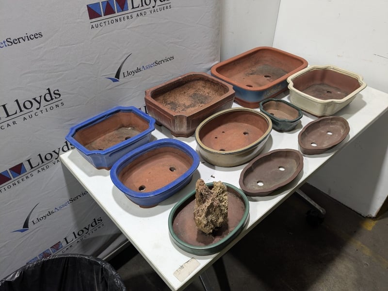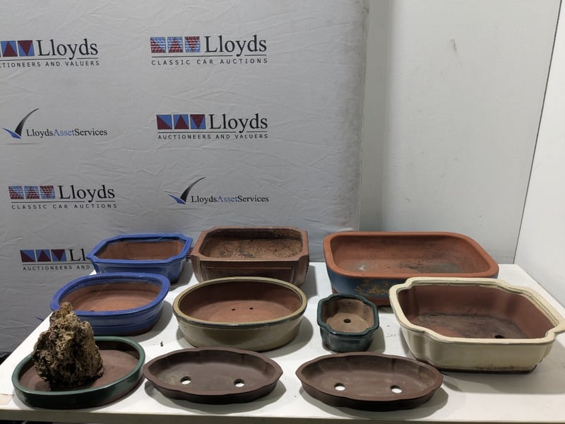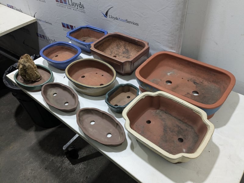 Ceramic bonsai pot, drainage holes, ceramic material Sold as a lot Note: signs of wear, untested