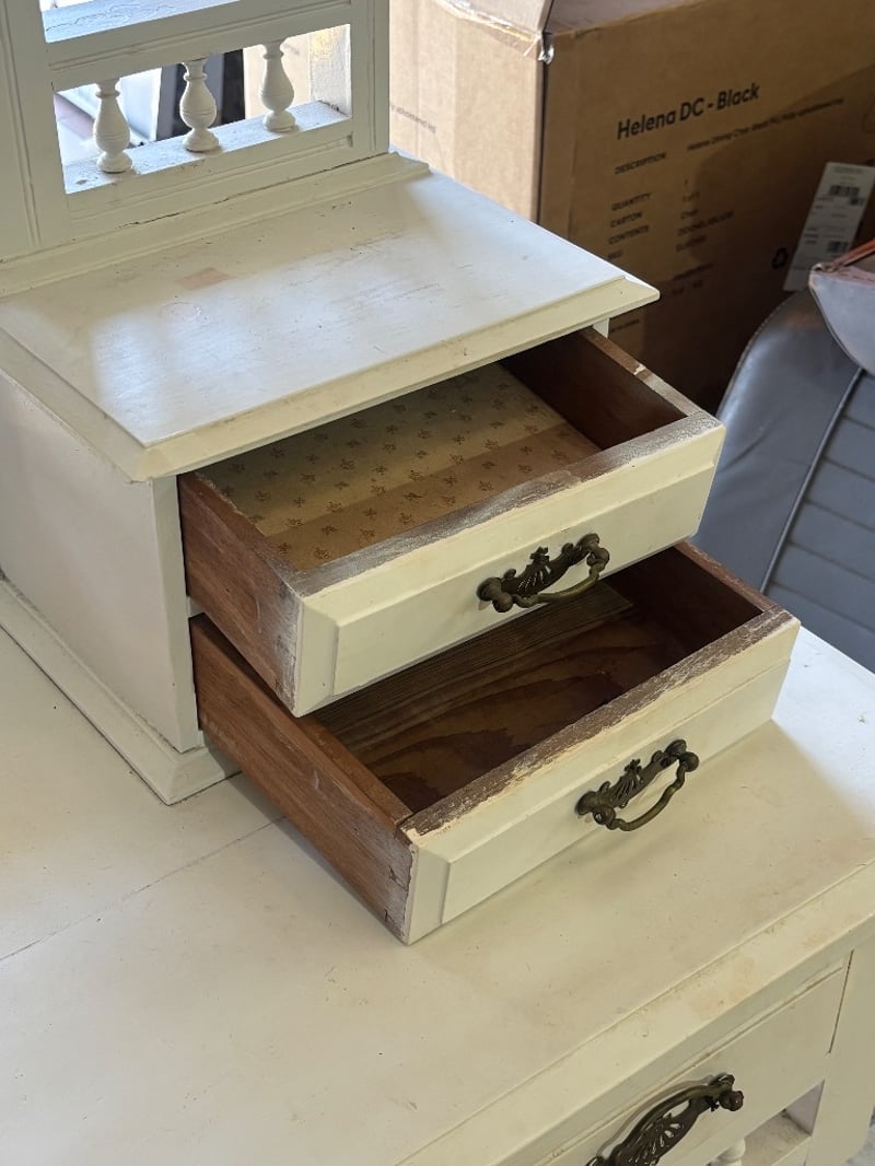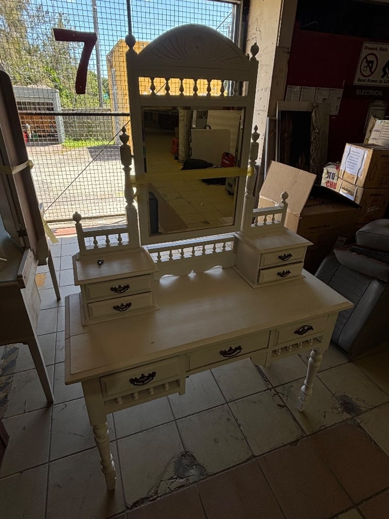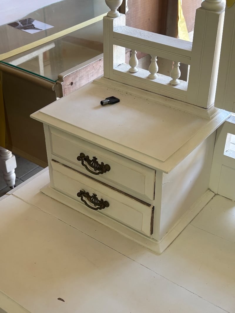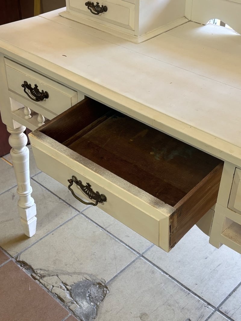 Wooden Dressing Table with Mirror and Draws, French Provincial Styled, Metal Handles, Swivel Mirror, Marks and Scratches